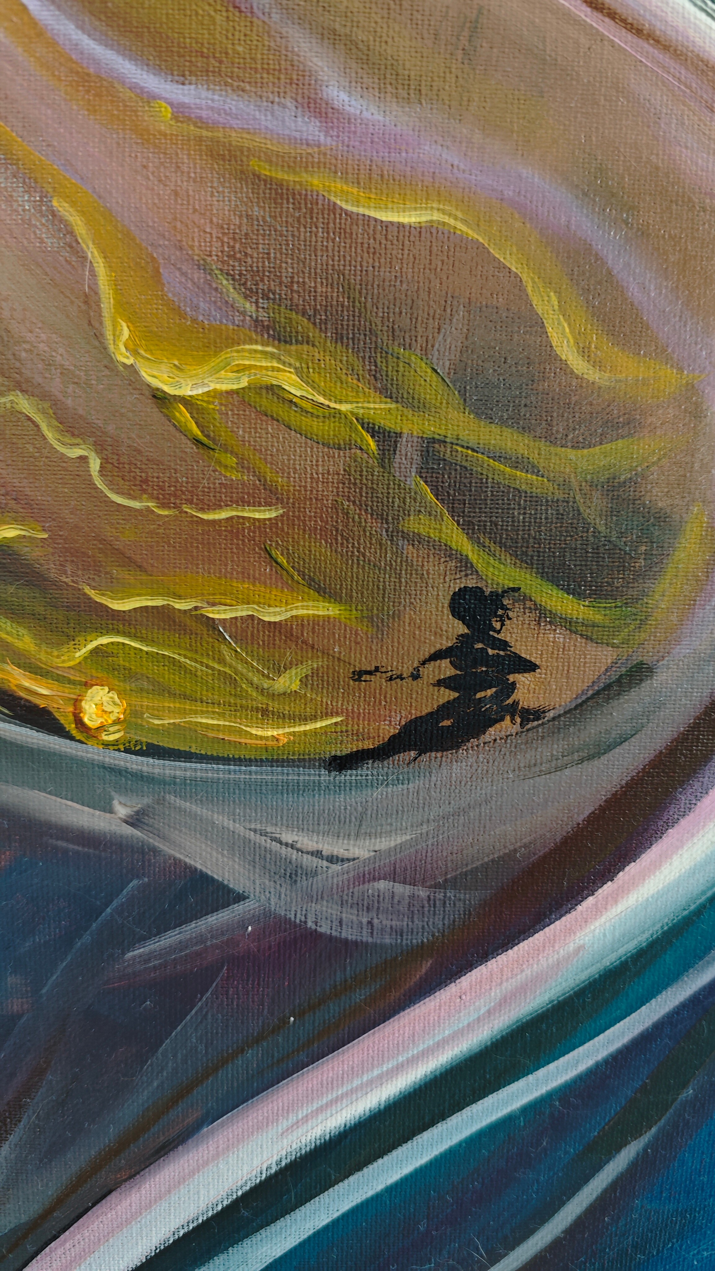 Painting "Baggage" is made on a cotton canvas with oil paint. Palette reminds of fall and emotions accompanying us after a long journey.
