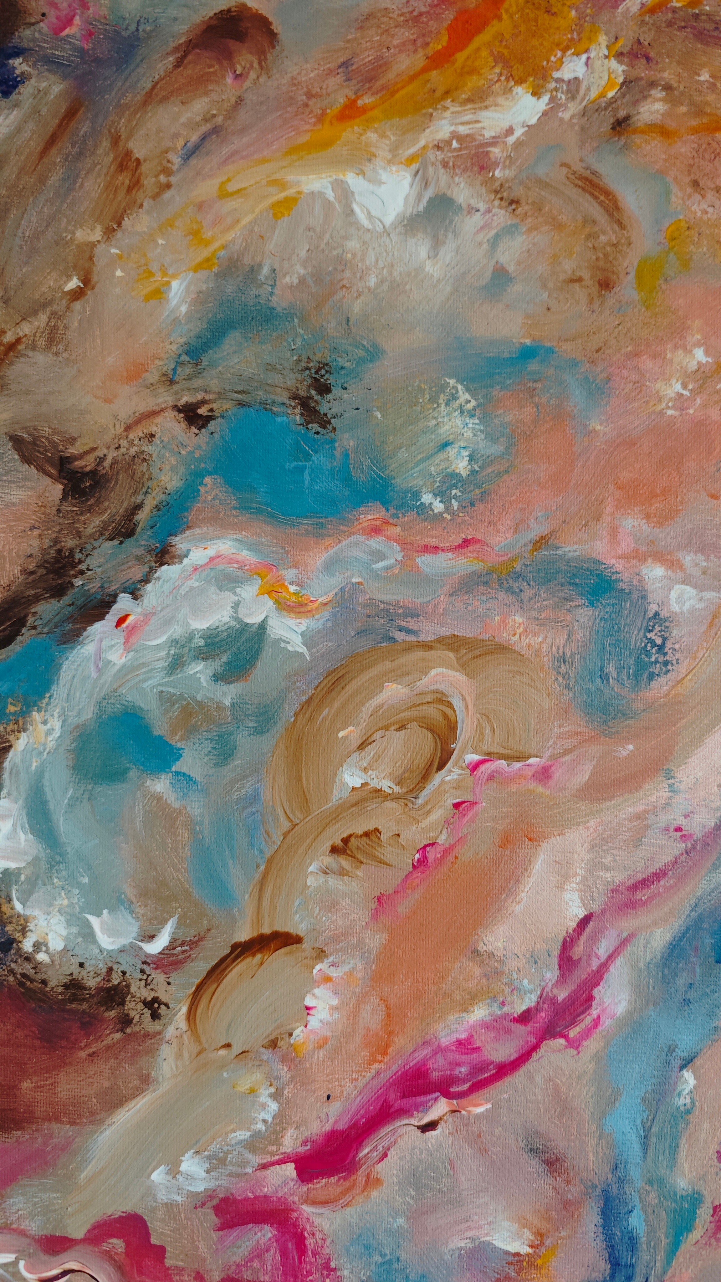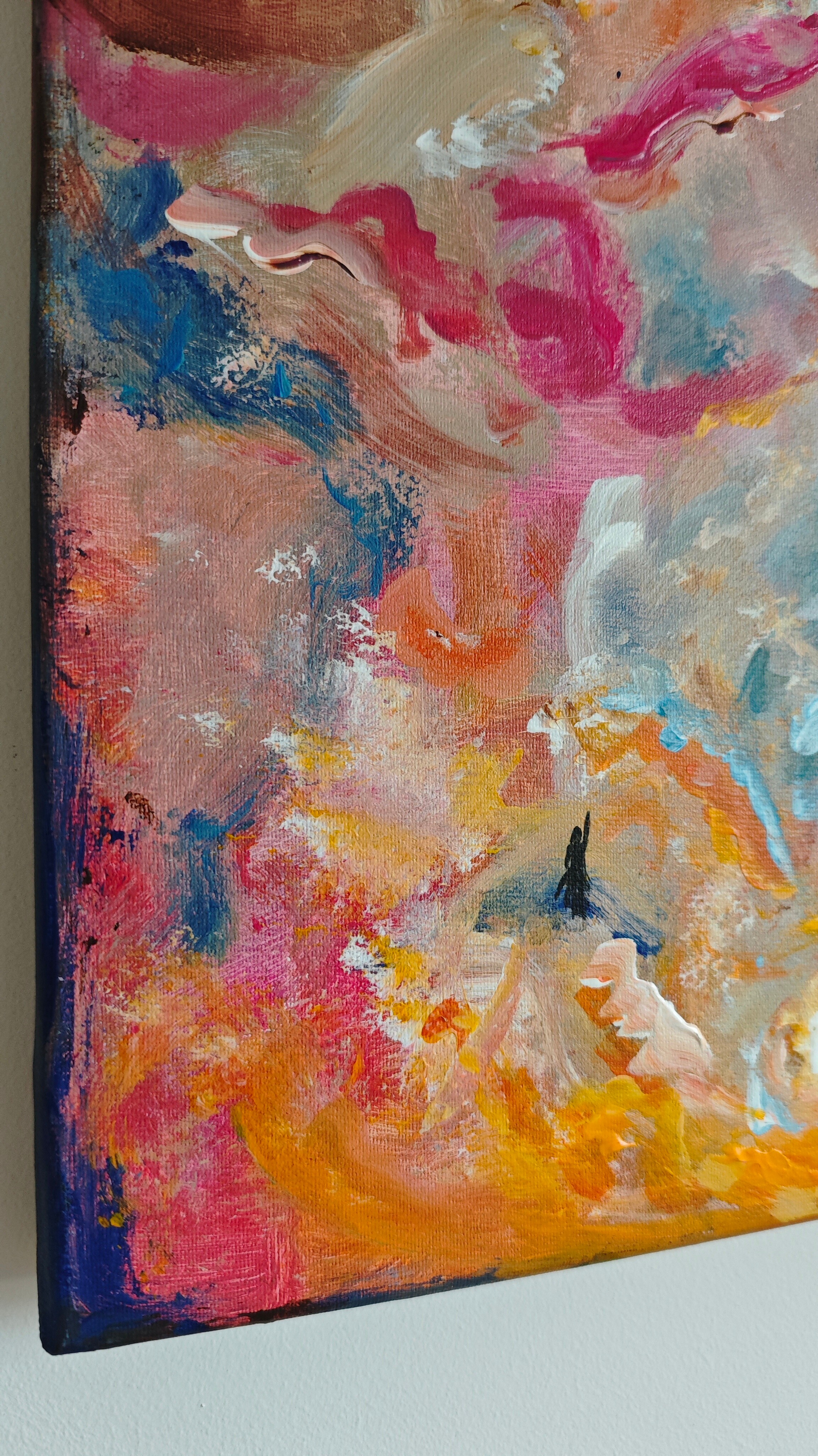 Obraz "Góra jest dołem" stworzyłam przy użyciu farb akrylowych oraz pasteli olejnych na podobraziu bawełnianym. Obraz doda koloru Twojemu wnętrzu.