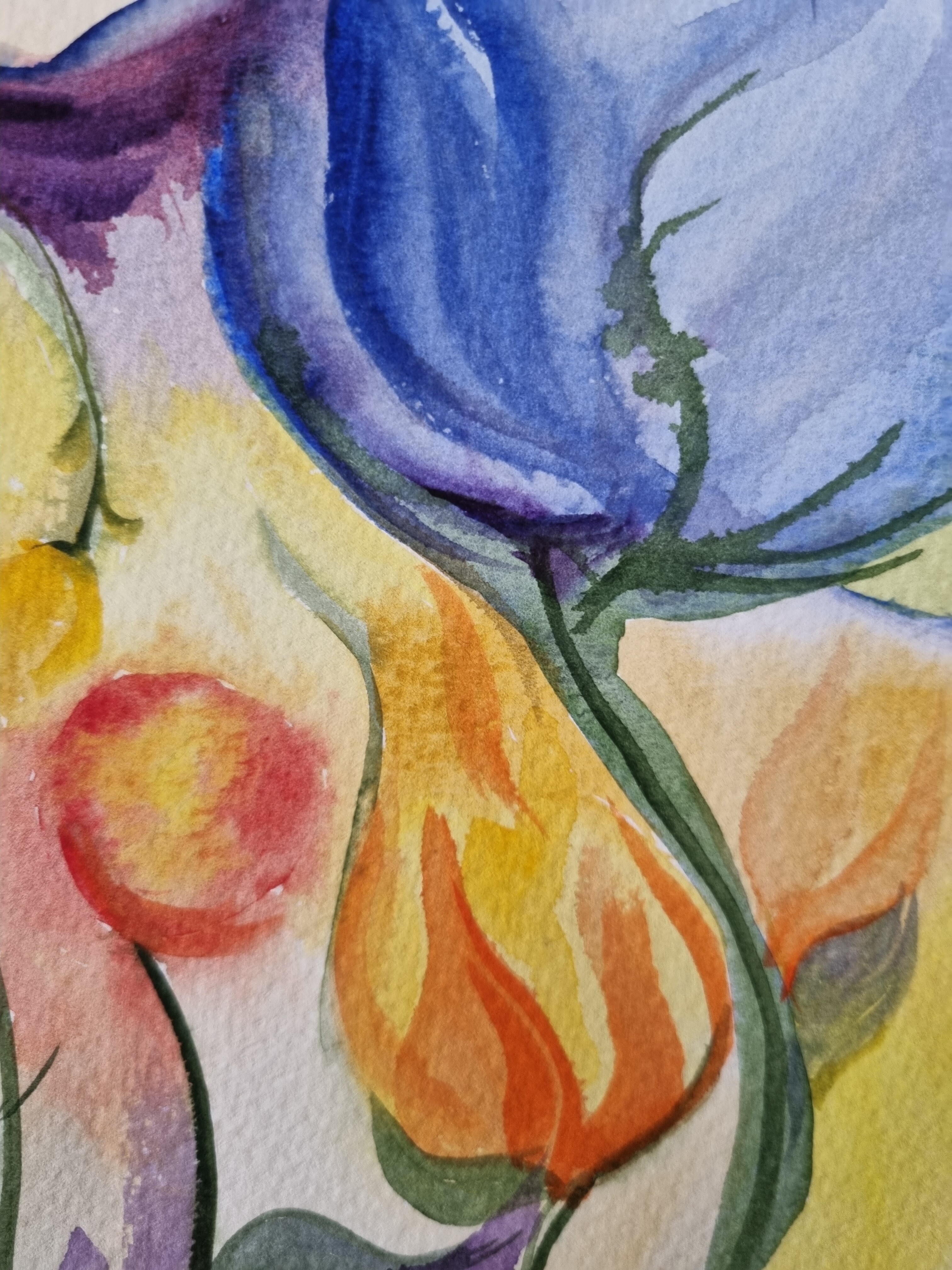 Obraz „Moja wyobraźnia” wykonałam na specjalnym papierze wykonanym w 100 % z najwyższej jakości bawełny przy użyciu farb akwarelowych.